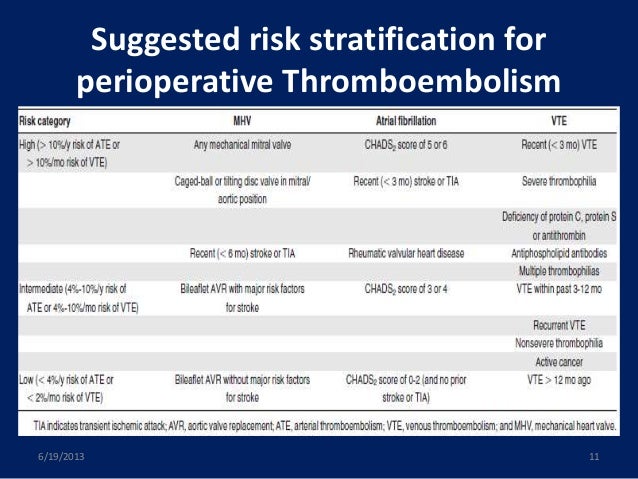 - Look up risk stratification guidelines when deciding whether to bridge warfarin